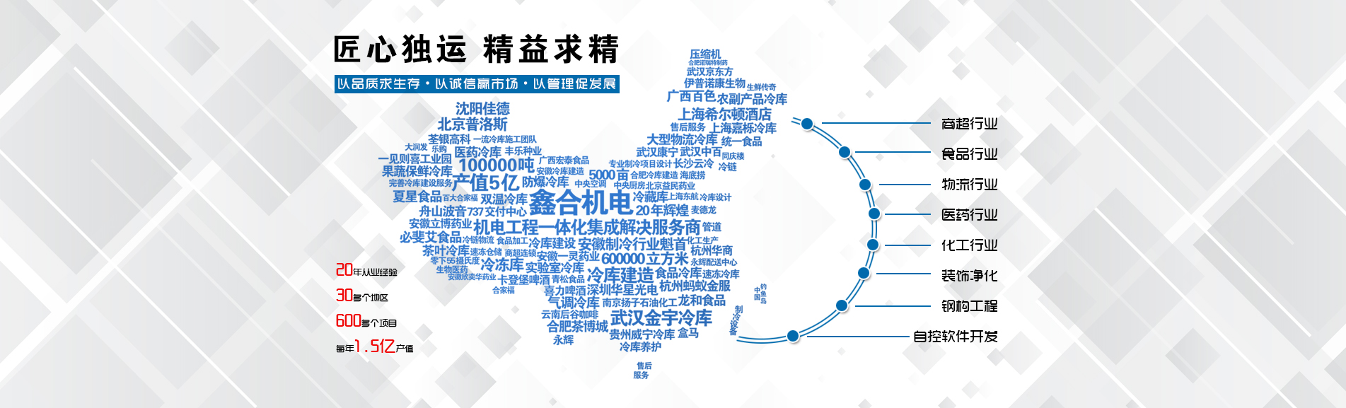 安徽鑫合機電設備有限公司于2002年組建運營,專業從事冷凍、冷藏庫、中央空調、醫(yī)藥凈化工程的規(guī)劃設計、施工承建、售后服務為一體的綜合性工程公司,與100多家實力雄厚的大中型企業建立長期產略合作關系,其中有多家世界500強和上市企業。公司作為中國倉儲與配送協會會員單位、安徽省制冷學會理事單位、上海楊浦區制冷協會工程總承包負責單位,引領于行業前沿。我們將銘記給予我們大力支持的各界新老朋友及合作伙伴,我們將會保持“互惠互利、共同發(fā)展”的原則與您共創(chuàng)雙嬴的合作關系。
